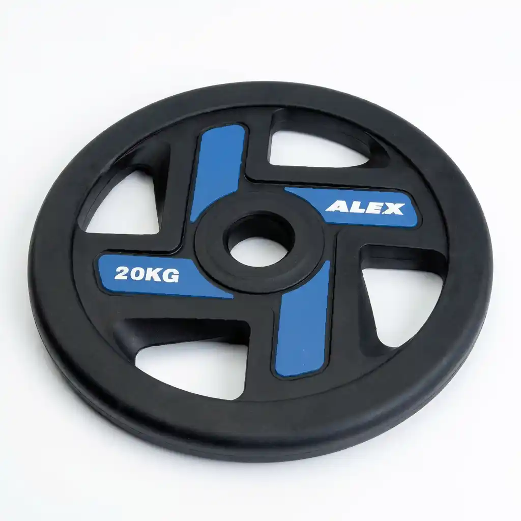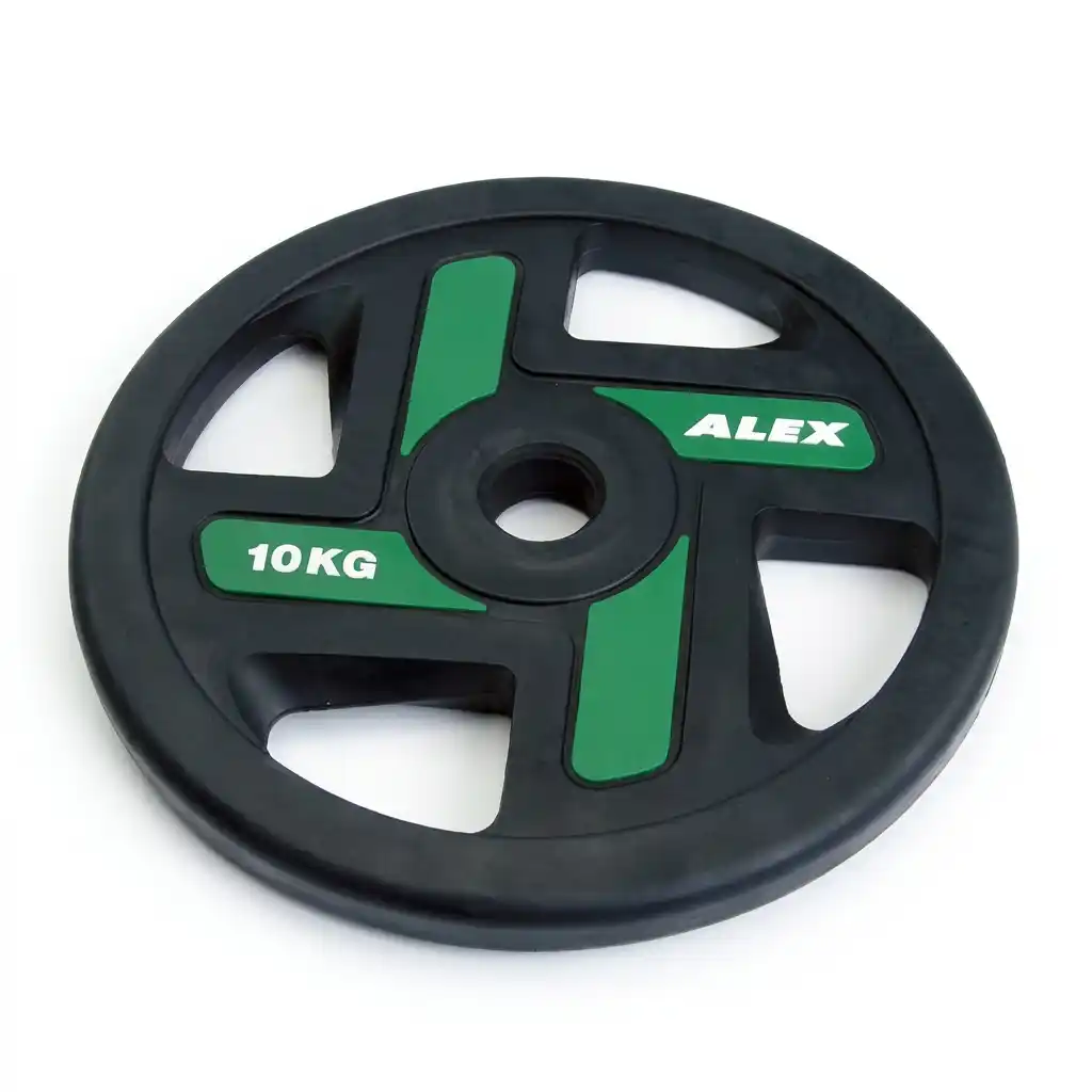 The 4-Holes TPU Plate by Alex Athletics is the premium choice for modern gyms. Made with Eco-friendly Thermoplastic Polyurethane (TPU), these plates are odorless, highly resistant to tearing and abrasion, and outlast traditional rubber. The intelligent 4-hole grip design allows for easy handling from any angle, making loading safer and faster. Featuring a steel center ring for smooth sliding and vibrant color coding for easy identification, they offer superior shock absorption and a professional aesthetic that withstands heavy commercial use.