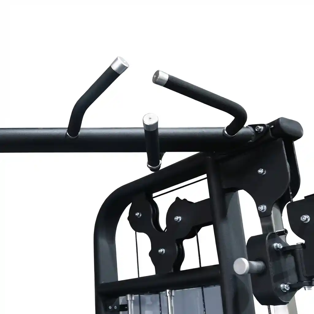 The integrated crossbar features multiple grip angles for pull-ups. You can perform wide grip, neutral grip, and chin-ups. This adds a bodyweight training dimension to the machine, making it a complete upper-body station.