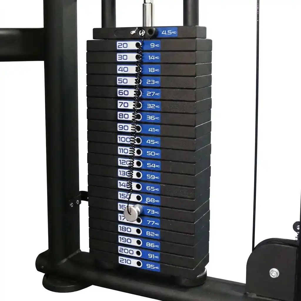 Power to spare. With two independent stacks of 210 lbs each, this machine accommodates even the strongest users. The dual-stack design allows two people to train at once (on single cables) or one person to perform bilateral movements (like chest press) with even resistance on both sides.