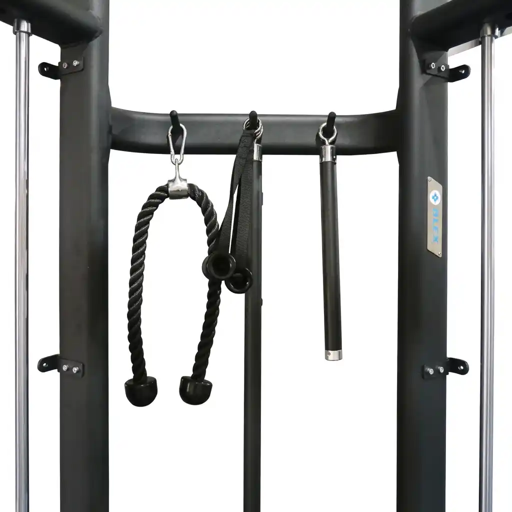 The mainframe is constructed from high-strength oval steel pipes (50x100x3mm) finished with a premium powder coating. It looks and feels indestructible. The adjustable pulleys can be set to 22 different height positions, allowing you to perform everything from low rows and bicep curls to chest flyes and lat pulldowns. The machine includes multi-grip pull-up handles for vertical pulling power and accessory hooks for storing attachments. Whether you are a bodybuilder looking for constant tension isolation or a golfer working on rotational power, the Functional Trainer adapts to your biomechanics, not the other way around.