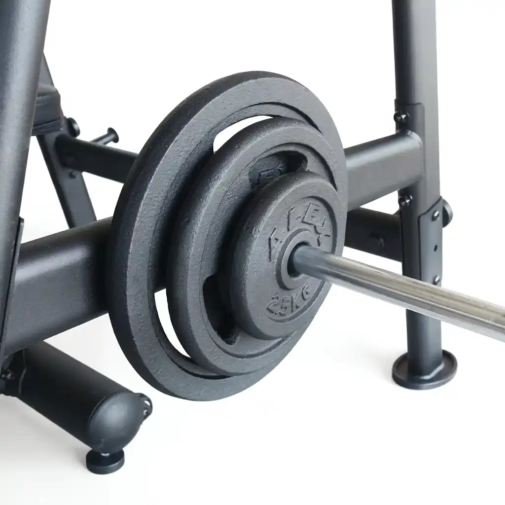 The rack features multiple holes for J-hook adjustment. This allows users of all heights to find their perfect unrack position for squats and presses. The J-hooks are designed to hold the bar securely and are often lined (check spec) or shaped to protect the bar’s knurling.