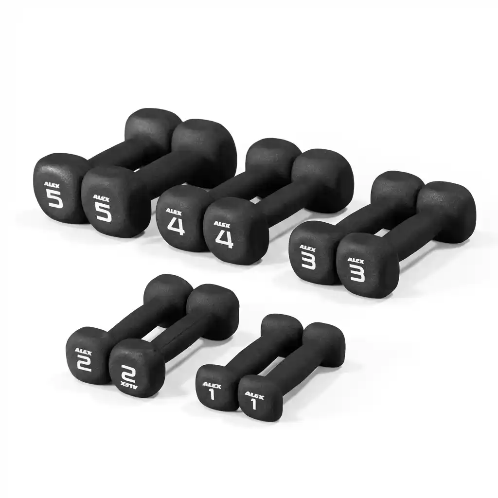 The Octo-Square Dumbbell (S4) by Alex Athletics reimagines the standard fitness weight with a focus on stability and readability. Unlike traditional round or even hex dumbbells, this unique “Octo-Square” profile features eight distinct flat sides with squared-off edges. This geometry offers superior anti-roll properties, ensuring the weights stay exactly where you place them, even on uneven surfaces or during fast-paced group classes. It also makes them incredibly easy to stack for storage, maximizing space in a small home gym or studio. The dumbbells are dipped in a high-quality Neoprene coating, providing a soft, matte finish that is comfortable to hold and provides excellent traction, even when your hands are slippery with sweat.