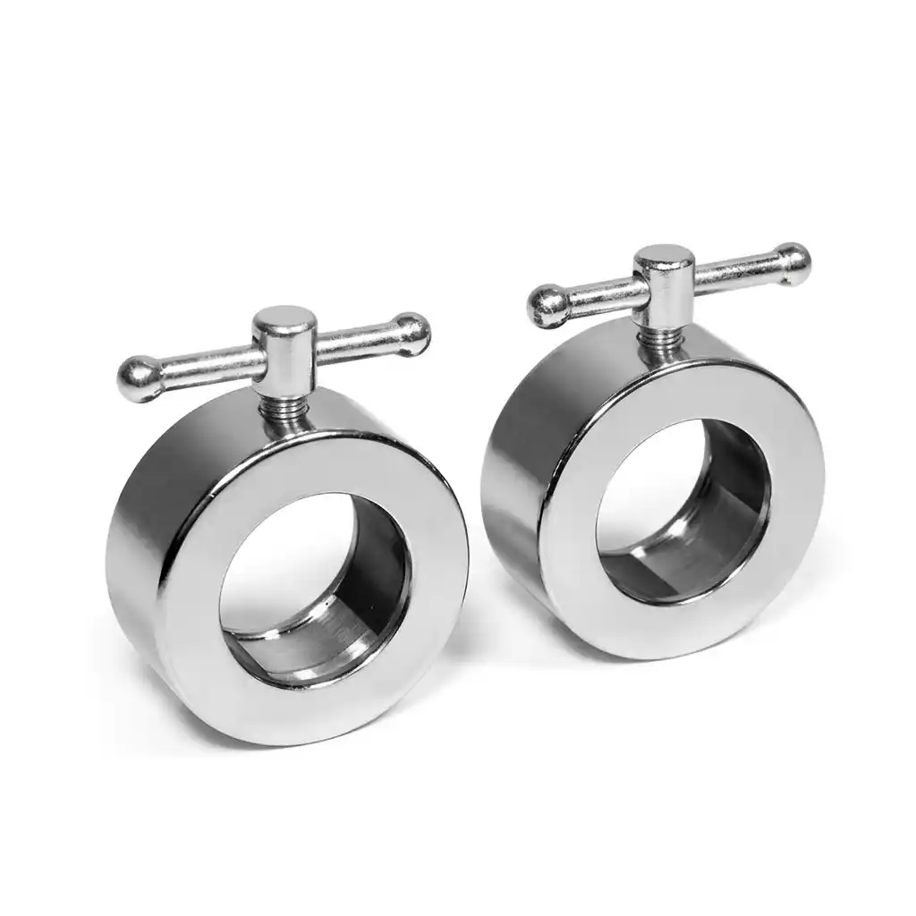 The Pressure Ring Collars by Alex Athletics offer superior holding power with zero damage to your equipment. Featuring an innovative internal compression band, the lever bolt tightens the ring evenly around the bar sleeve, creating a 360-degree lock without the bolt ever digging into the metal. This ensures your barbell stays scratch-free while plates are held immovably tight. Made from durable chrome-plated steel, they are perfect for adjustable dumbbells and heavy barbell training where plate stability and equipment preservation are paramount.