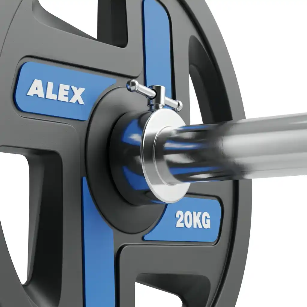 For those who prefer the mechanical security of a screw-lock collar but hate the damage it does to equipment, the Pressure Ring Collar by Alex Athletics is the ingenious solution. Traditional screw collars drive a bolt directly into the barbell, leaving ugly gouges and marks on the sleeve. This model revolutionizes that mechanism by introducing an internal “compression ring band.” When you turn the lever bolt, it doesn’t touch the bar; instead, it tightens this internal band uniformly around the circumference of the sleeve. This distributes the pressure evenly, creating a vice-like 360-degree grip that offers superior holding power without a single point of damaging contact. It is the perfect marriage of old-school heavy-duty security and modern engineering care.